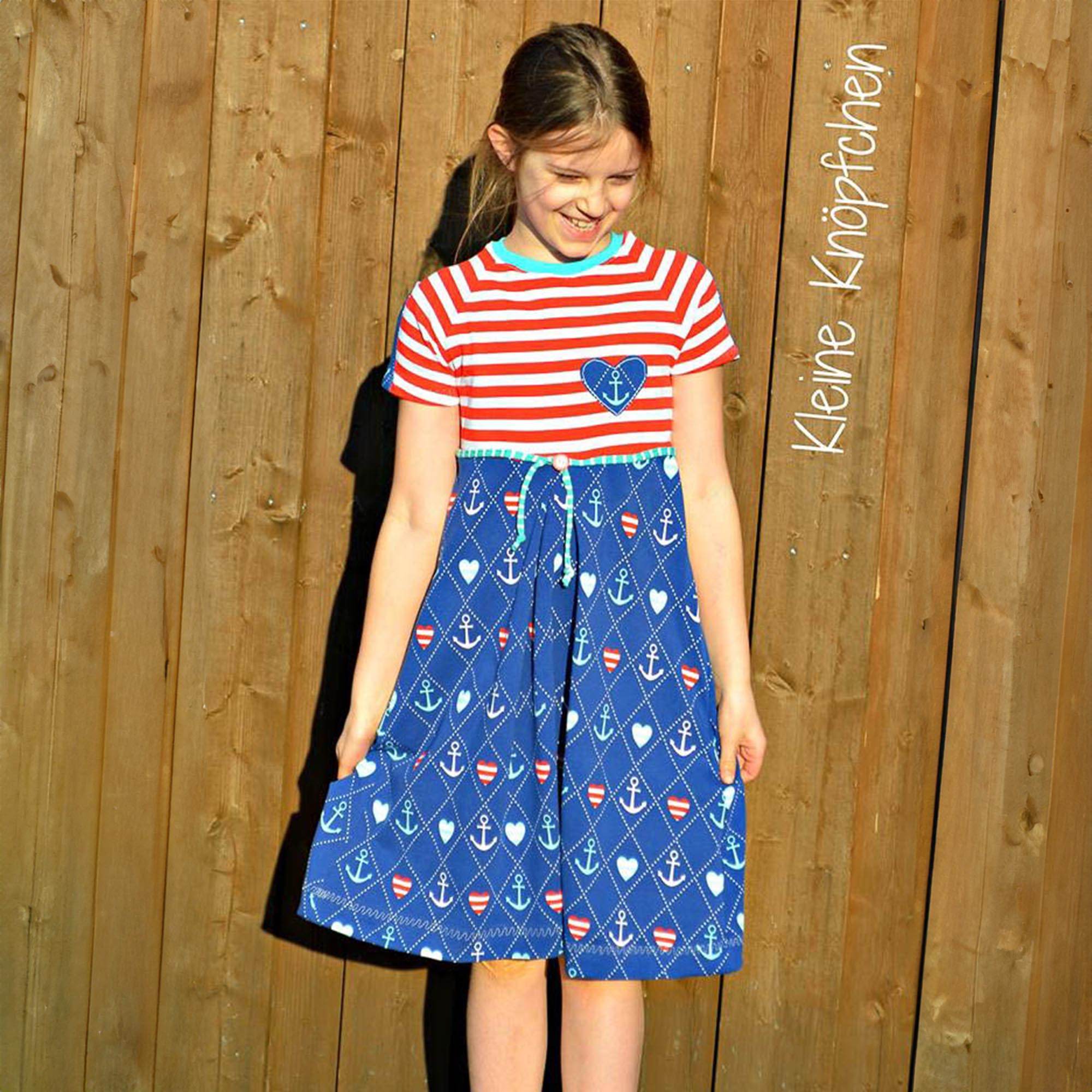 Für den oberen Teil des Schnittes könnt ihr alle Jersey-, Sweat- und Interlockstoffe verwenden. Ich empfehle euch Baumwoll-Jersey mit Elasthan-Anteil. Das Rockteil kann aus dehnbaren und nicht dehnbaren Stoffen genäht werden. Für den Halsausschnitt und die Version mit Bündchenabschluss an den Ärmeln wird Bündchenstoff benötigt.