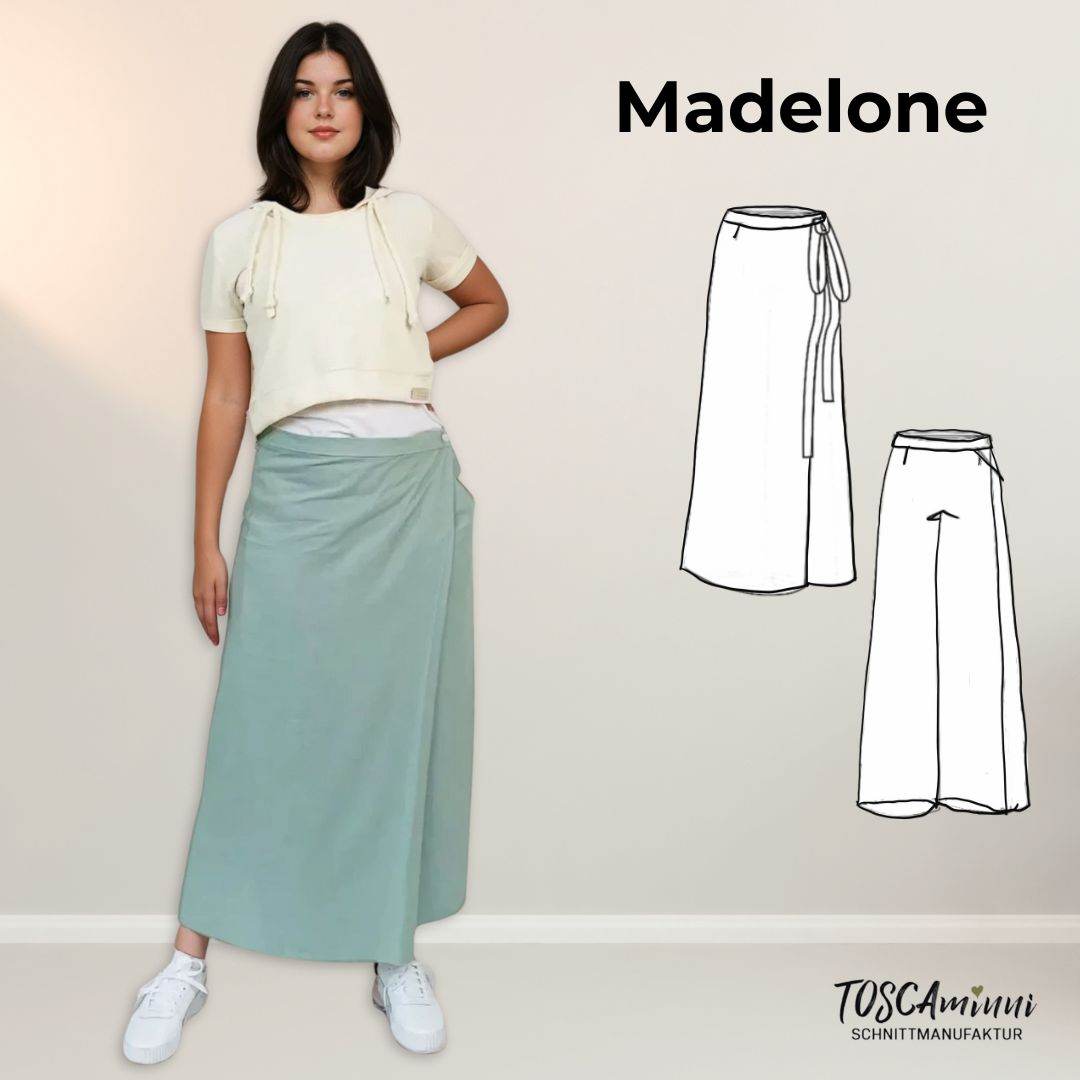 Mit dem Hosenschnittmuster Madelone nähst Du Dir einen extravaganten Hosenrock bzw. Wickelhose die Dich durch den Sommer begleiten kann.