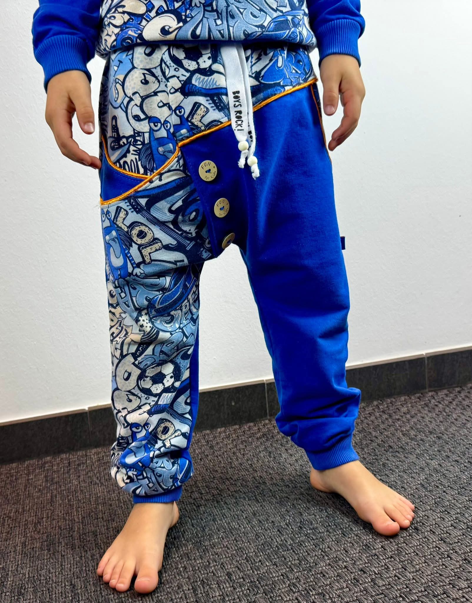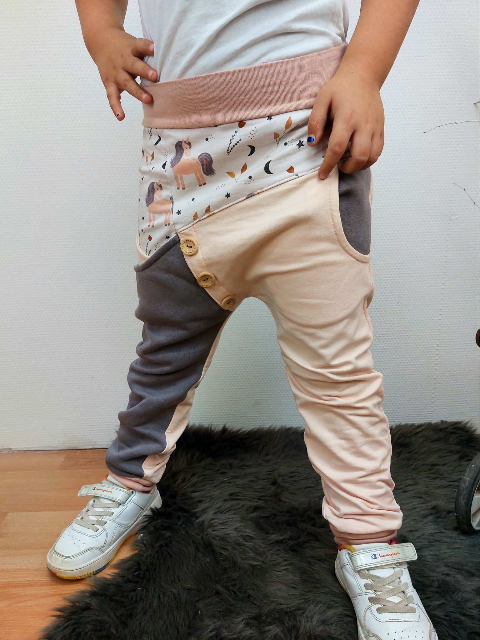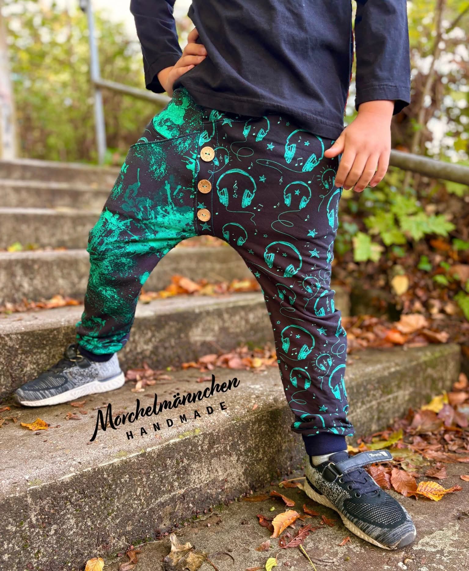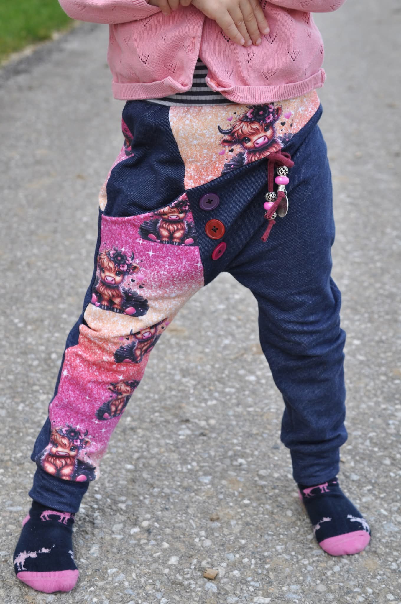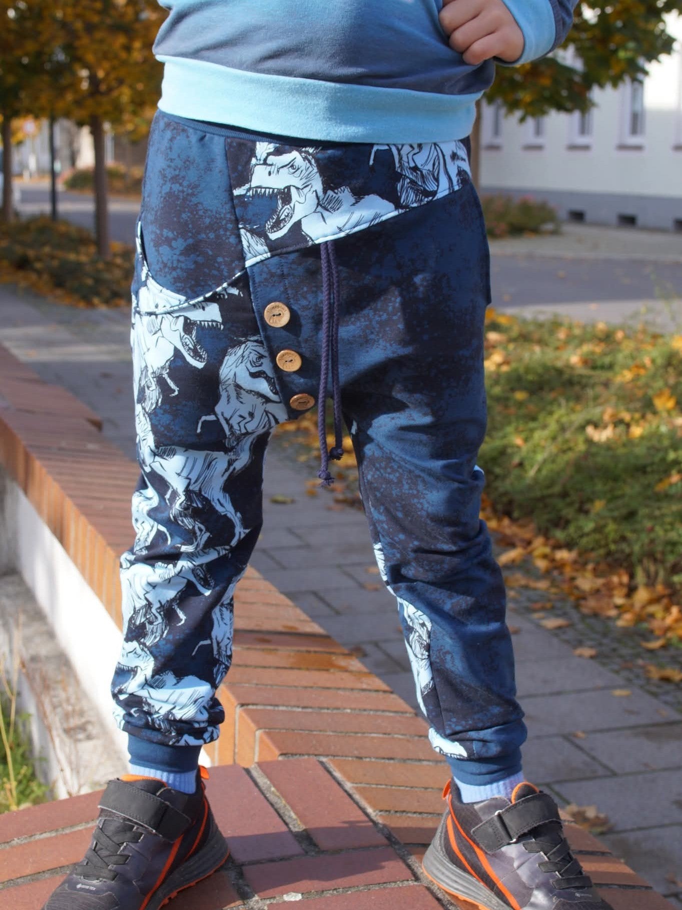 Hierbei handelt es sich um ein Schnittmuster inklusive bebilderter Nähanleitung für eine lange Hose in den Einzelgrößen 104, 110, 116, 122, 128, 134 und 140.