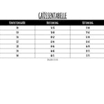 Sie sitzt oben bequem weit, hat einen tiefen Schritt und wird nach unten zu den Füßen hin enger.
