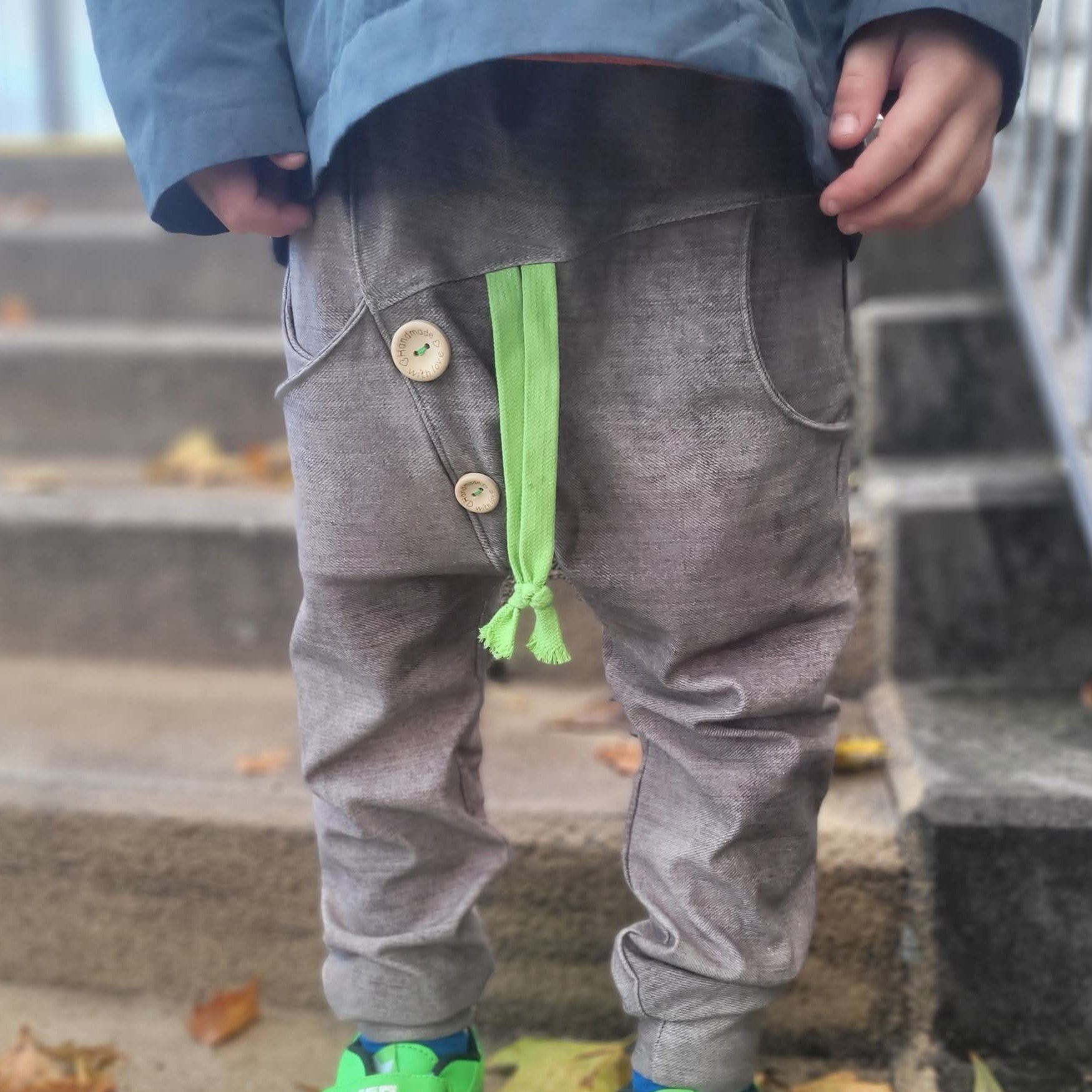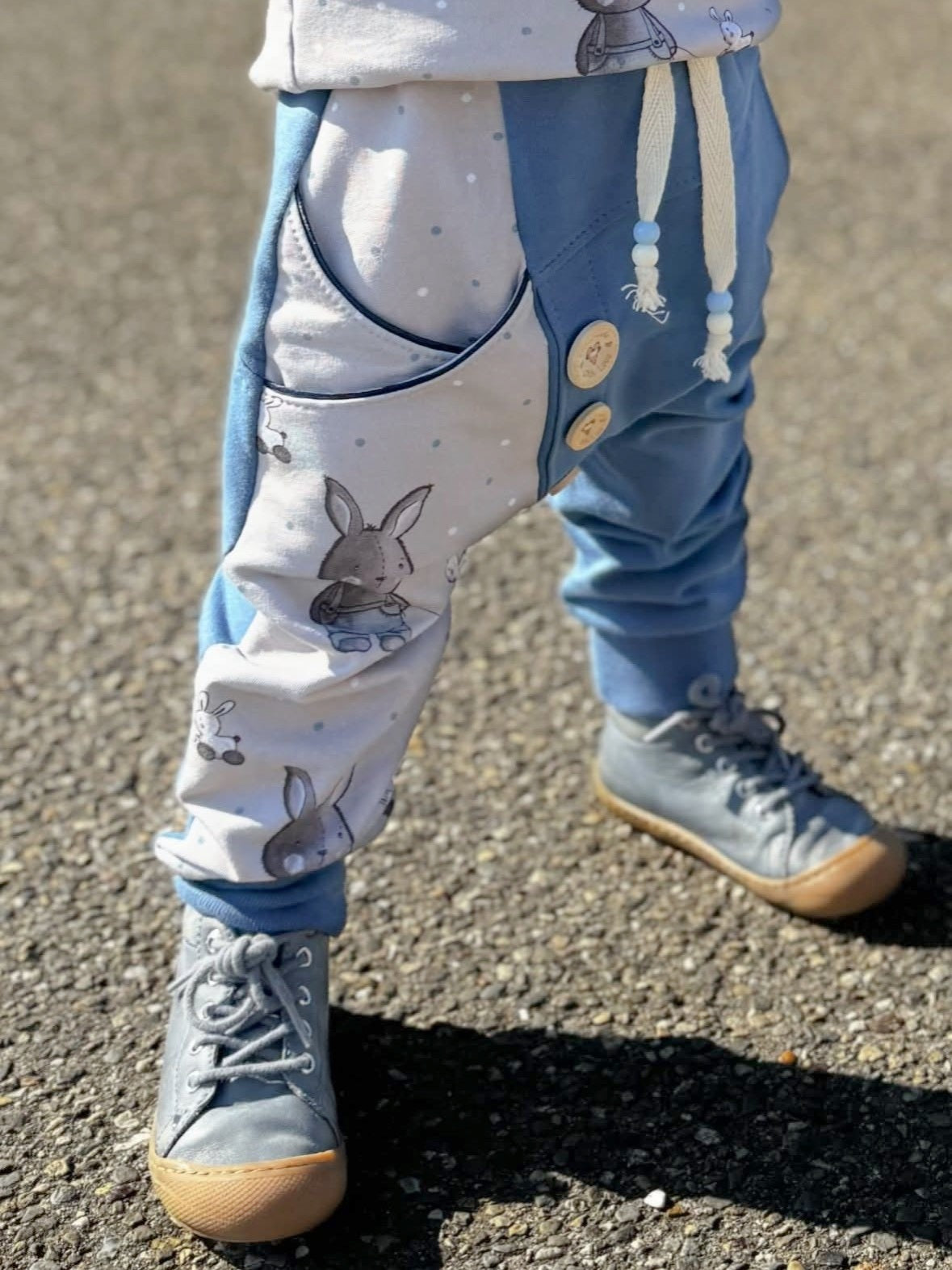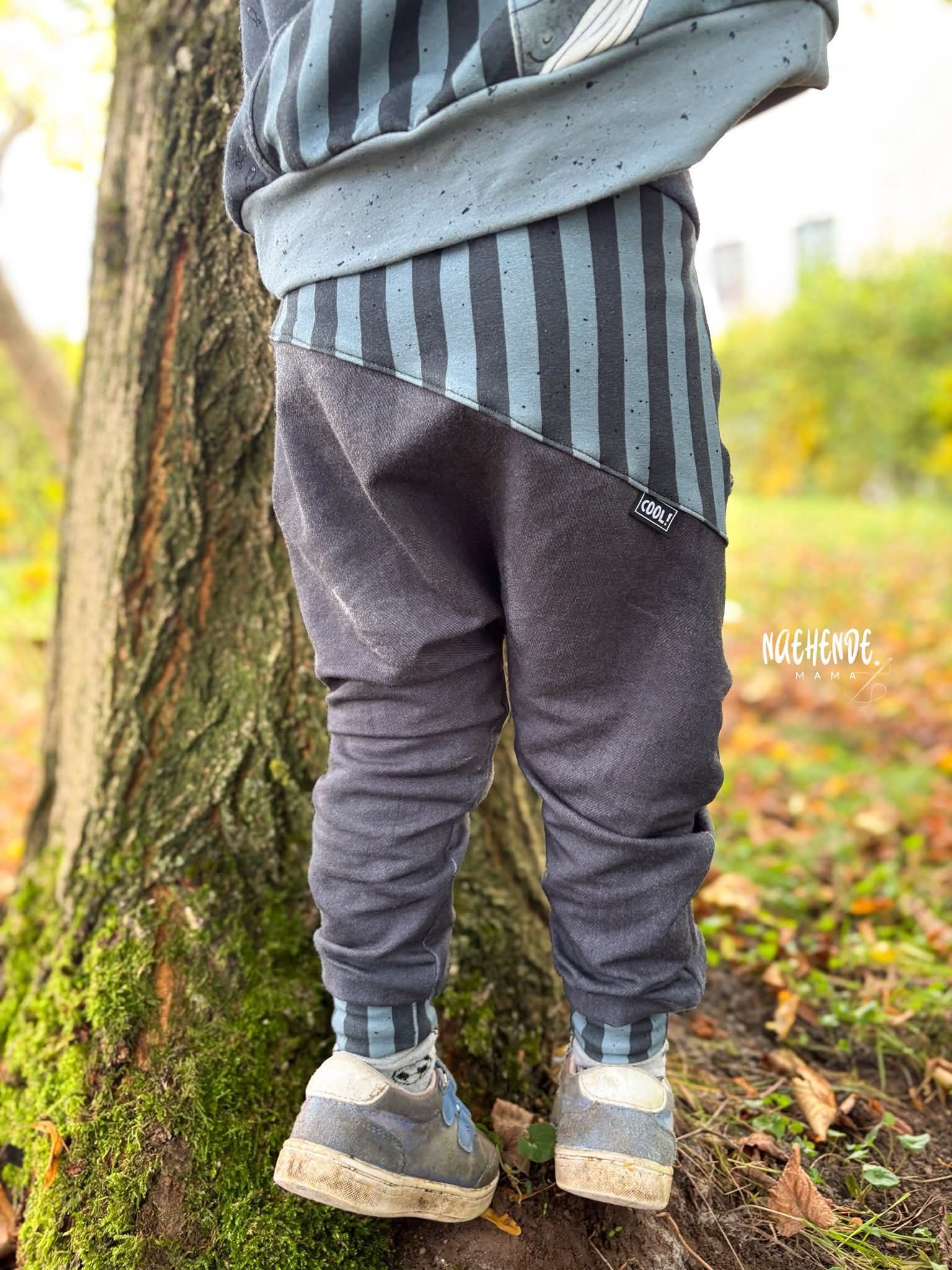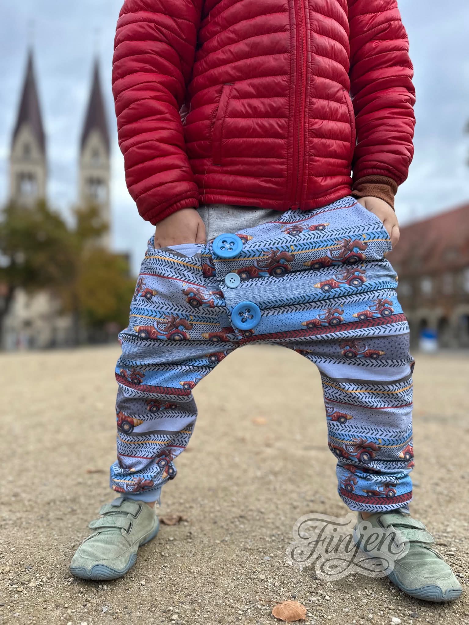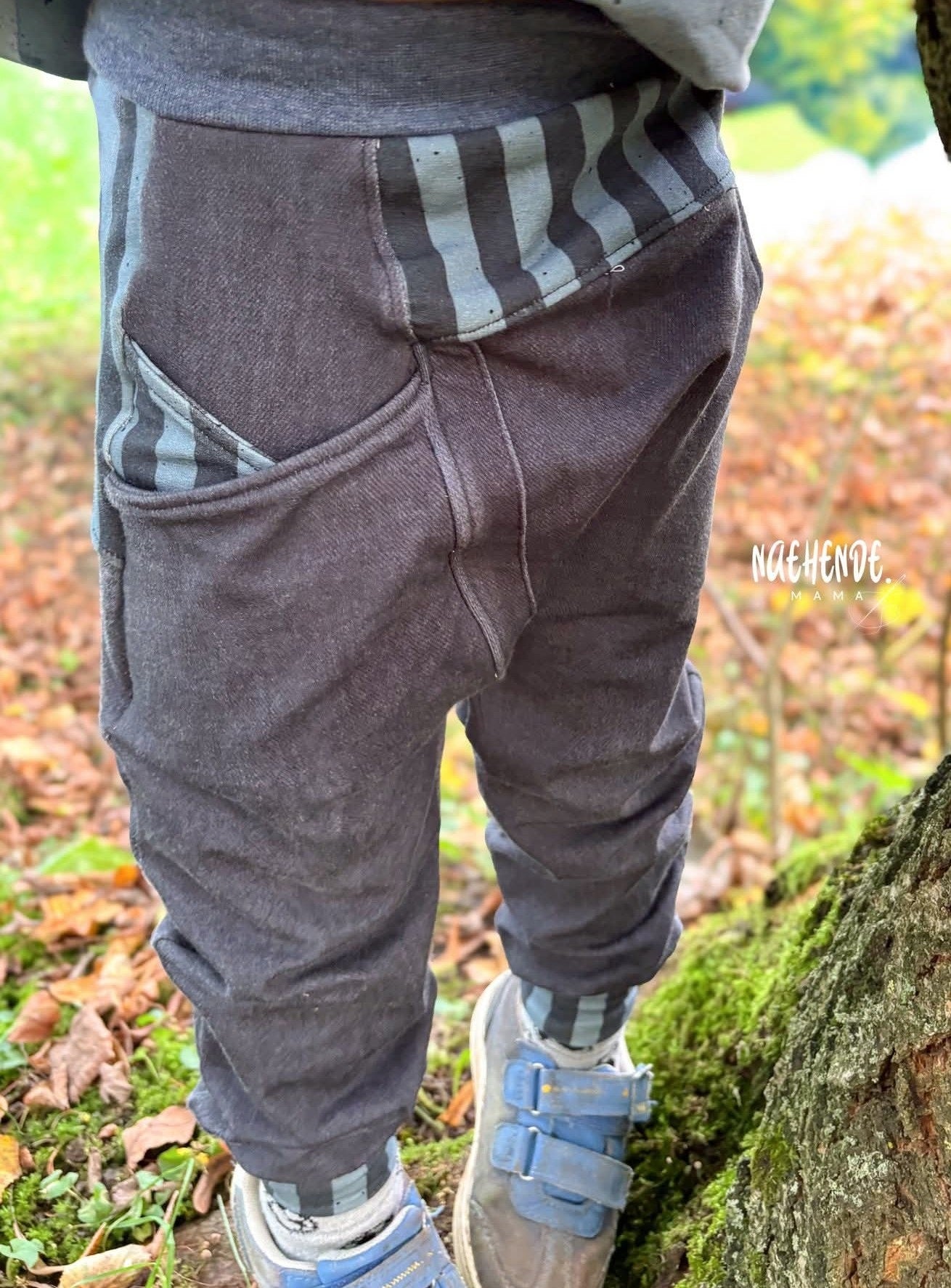 Hierbei handelt es sich um ein Schnittmuster inklusive bebilderter Nähanleitung für eine lange Hose in den Einzelgrößen 68, 74, 80, 86, 92 und 98.