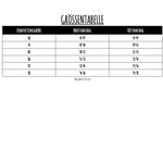 Sie sitzt oben bequem weit, hat einen tiefen Schritt und wird nach unten zu den Füßen hin enger.