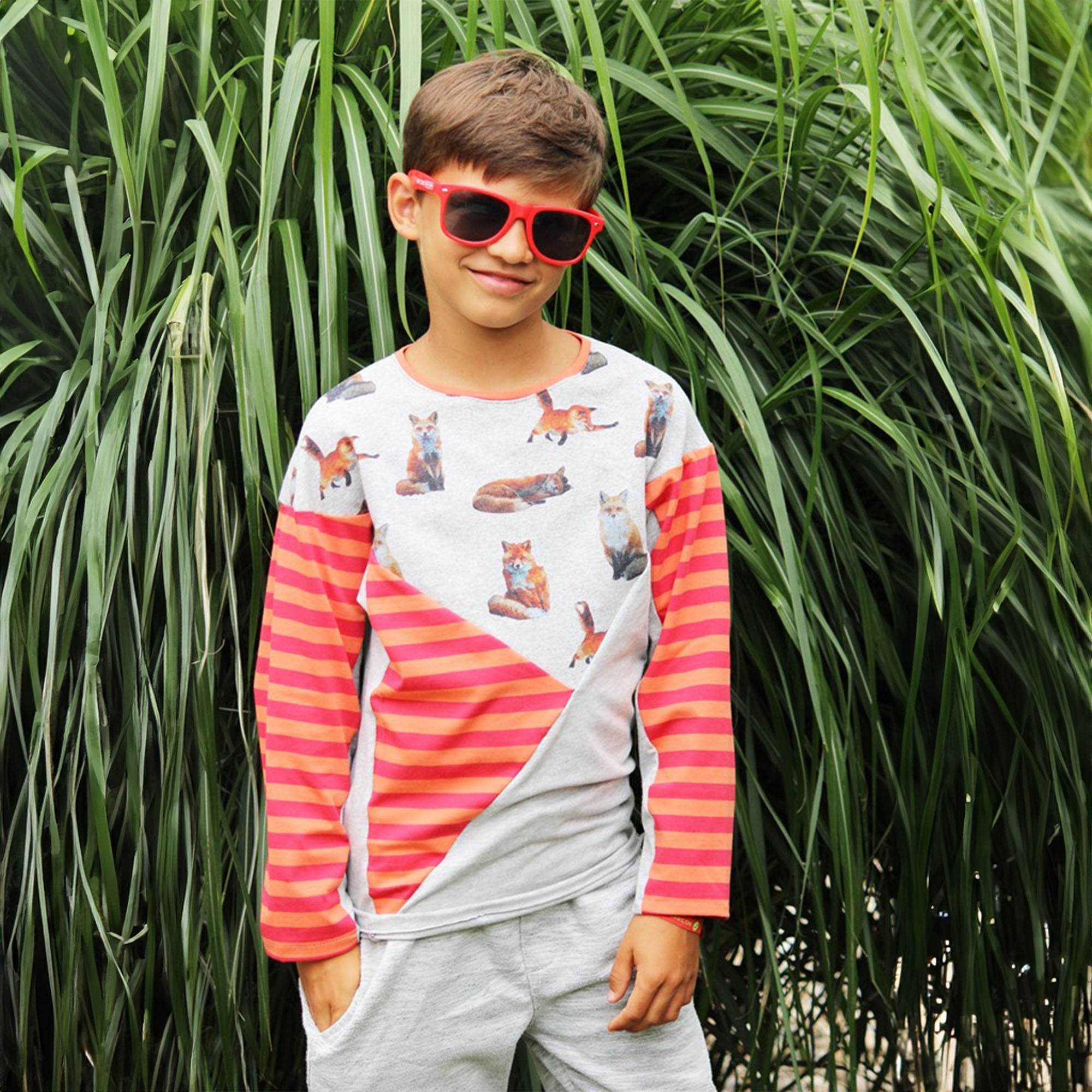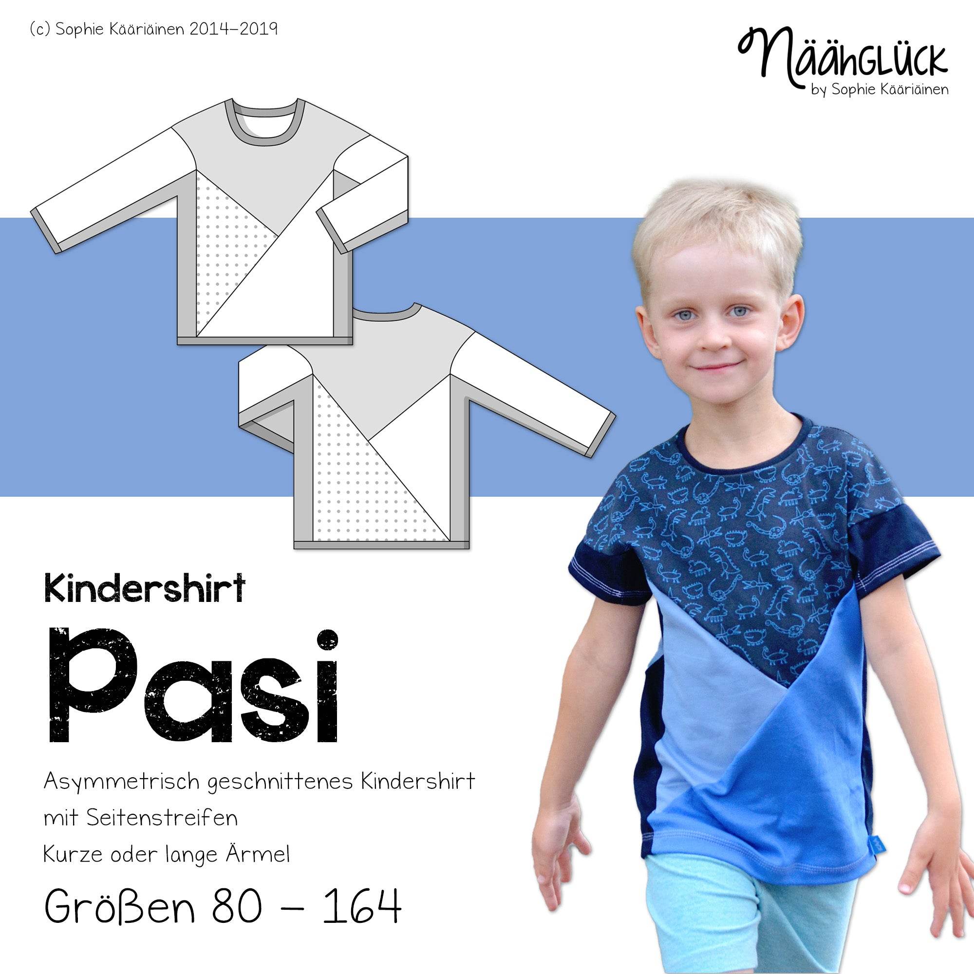 Pasi ist ein Schnittmuster, das sich toll für das Kombinieren verschiedener Stoffe und vor allem auch für Reststücke deiner Lieblingsstoffe eignet. Das Shirt kann mit kurzen oder mit langen Ärmeln genäht werden.