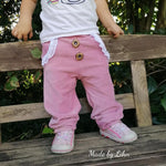 Die Main PumpiPants ist eine leichte und bequeme / weite Pumphose, welche schnell genäht ist. Sie bietet ausreichend Bewegungsfreiheit für die Kinder zum toben und spielen. An den Beinen wird sie mit einem Gummizug gerafft. Die Beine sind etwas länger geschnitten, damit durch die Gummi-Raffung ein schöner Pump-Effekt entsteht.
