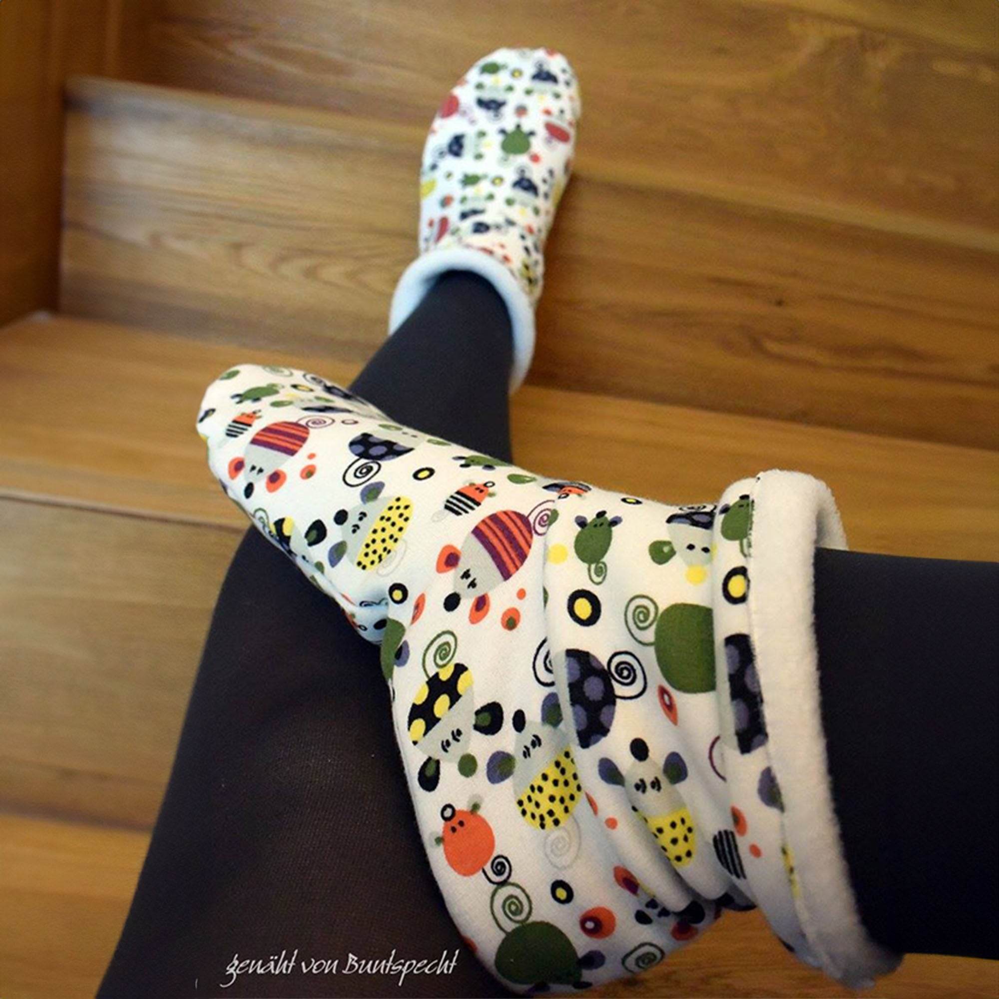 Mit dem Schnittmuster der Kuschelsocken kannst du tolle Haussocken zum Kuscheln für die kalte Jahreszeit zaubern. Sie eignen sich auch perfekt als kleines Geschenk oder Mitbringsel.