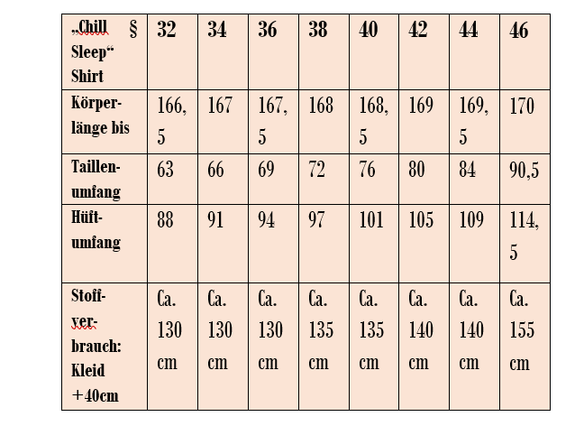 Das Schnittmuster „Chill&Sleep Loungewear Shirt“ ist ein locker sitzendes Shirt, ausgelegt auf dehnbare Stoffe, wie z.B. Wolle-Seide, Bambus-, Viskose-Jersey oder ähnliches.