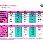 - Der Schnitt enthält die Größen 42 - 60.