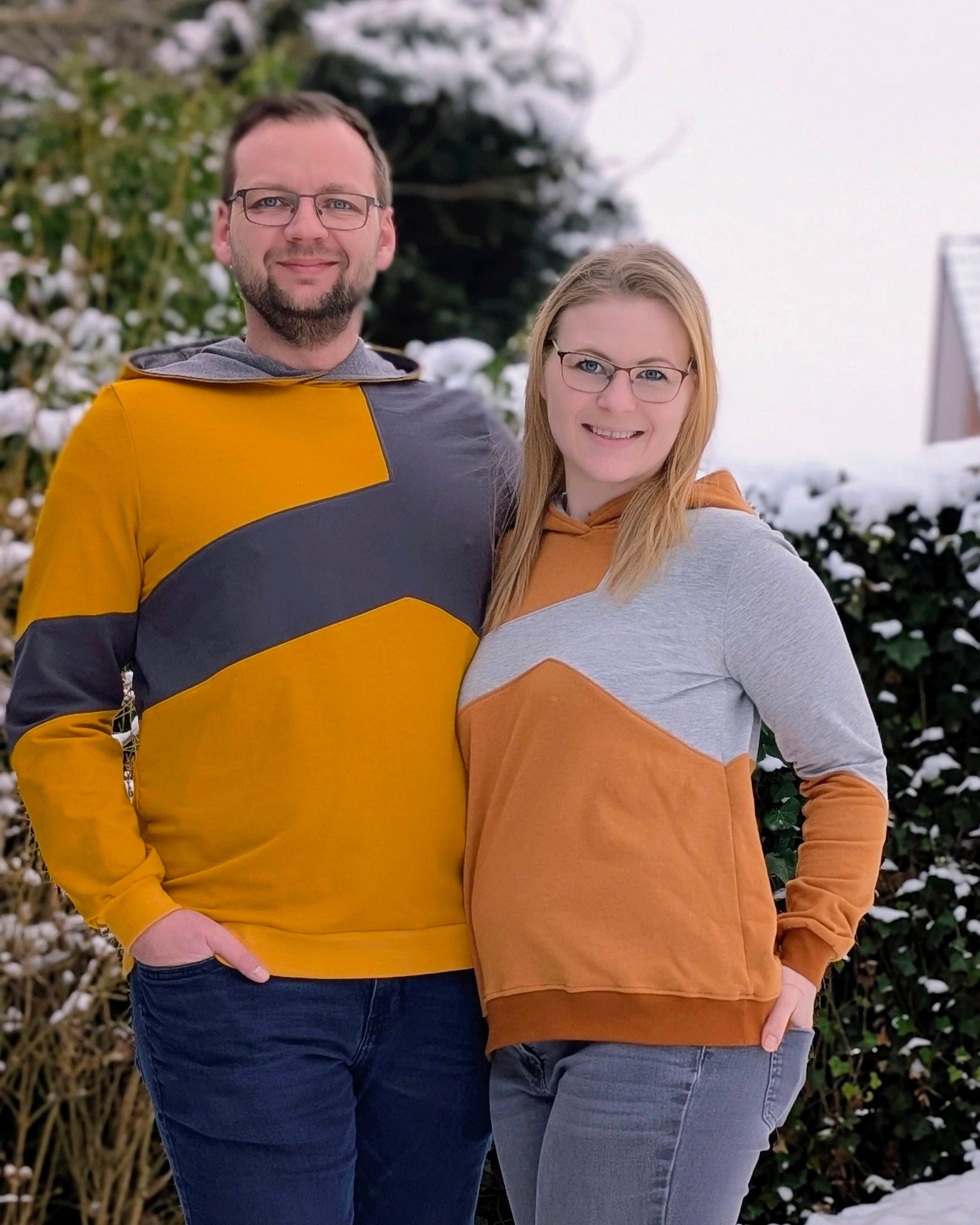 Wir bieten beide das Schnittmuster zum Verkauf an – jedoch in unterschiedlichen Ausführungen und mit eigenen Anleitungen.