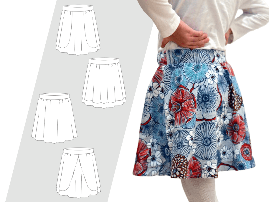 ✓ Schnittmuster für einen Kinderrock mit 3 verschiedenen Überröcken