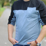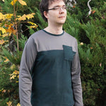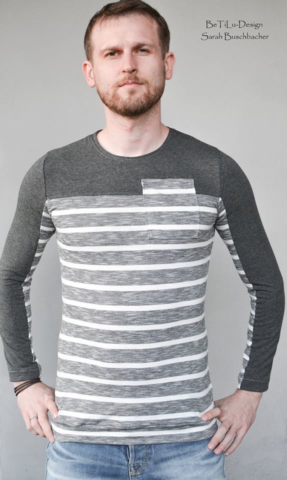 Das Shirt zeichnet sich durch eine Teilung des Oberteiles aus, die in die Ärmel übergeht. Der Schnitt ist für dehnbare Stoffe wie Jersey oder Viskosejersey ausgelegt. Du kannst es in Kurz-oder Langarm nähen und mit einer optionalen Brusttasche versehen.
