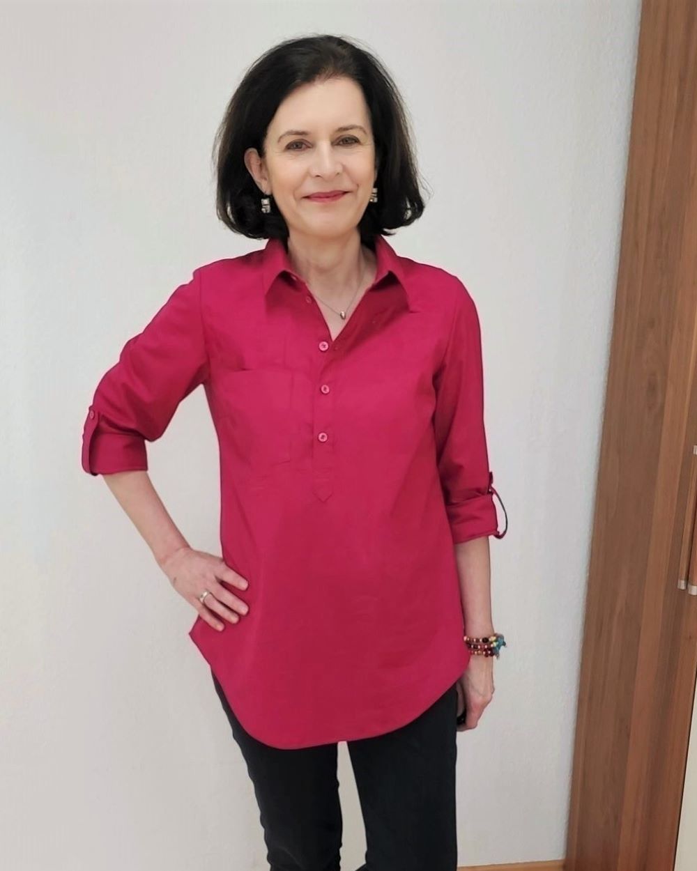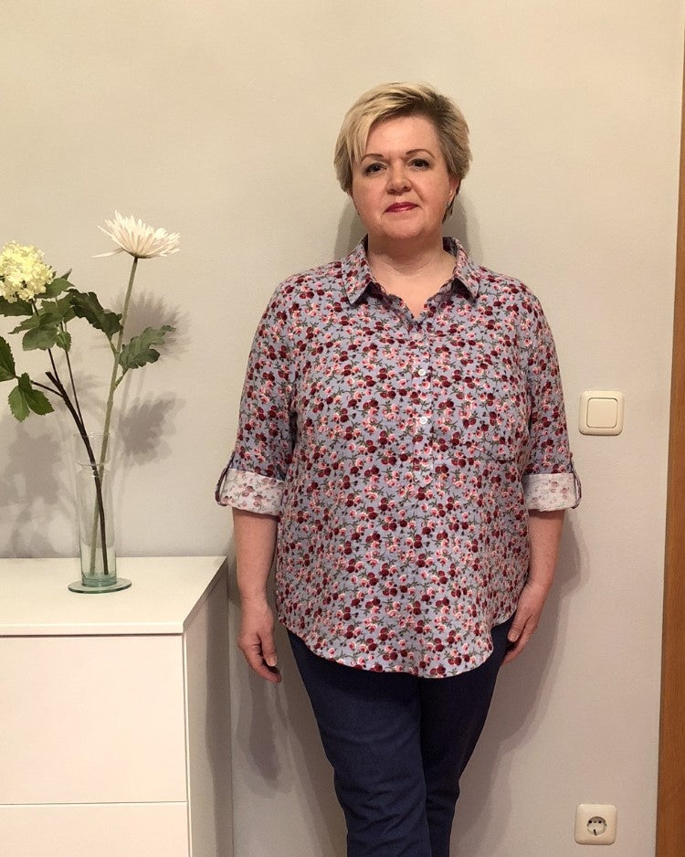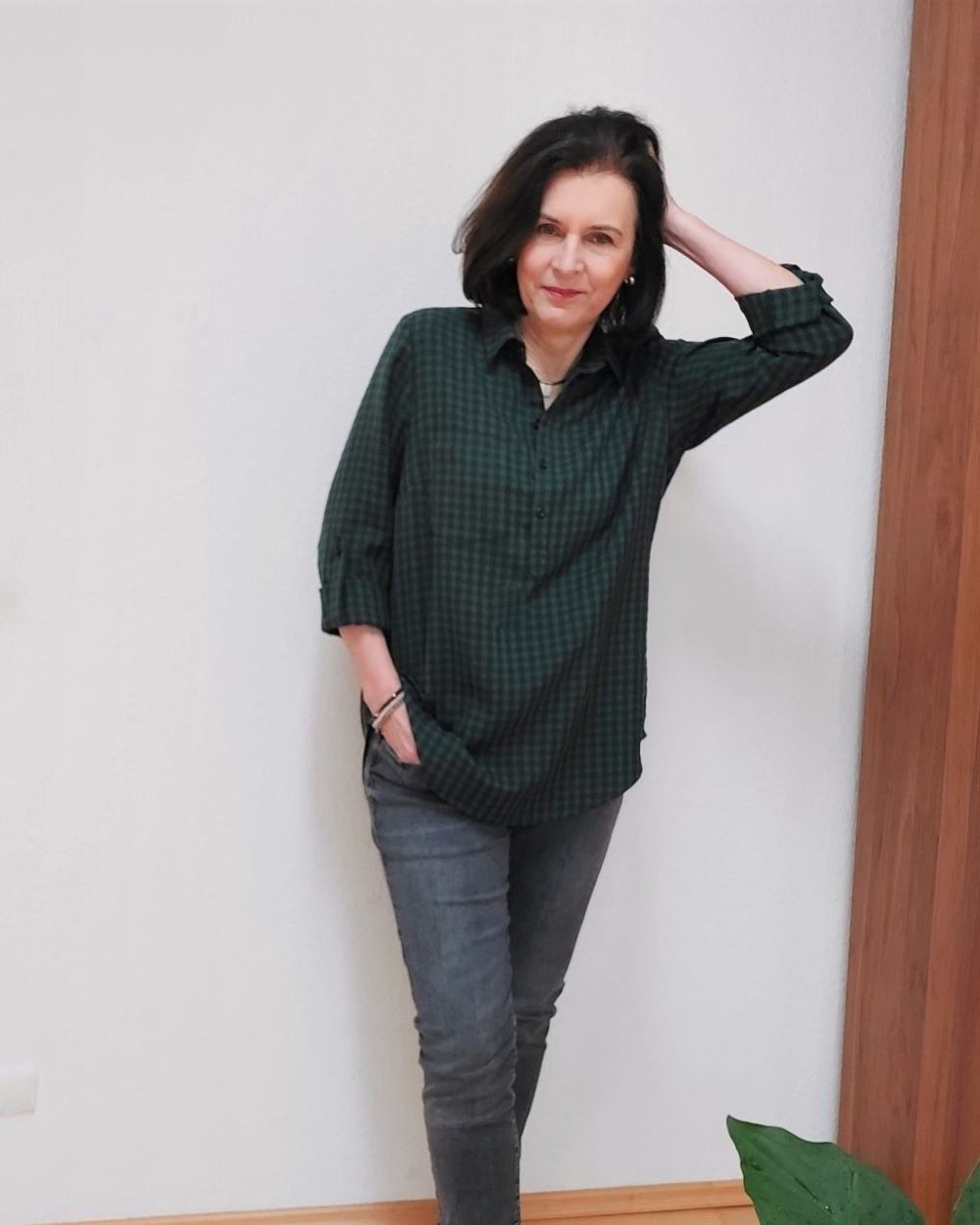Die Ärmel mit Manschette können gekrempelt werden. Für noch mehr kreative Ideen ist ein halblanger Ärmel mit Raffungen dabei.