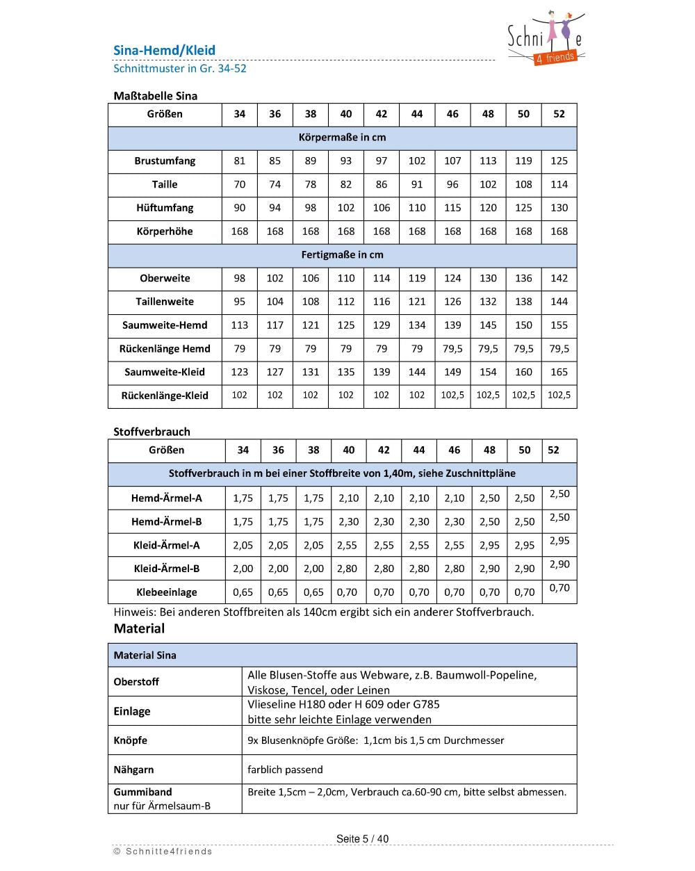 Die Nahtzugaben sind im Schnitt enthalten. Zum Drucken können die Größen und die Nahtlinien im PDF einzeln angewählt werden. Eine Anleitung zum Ausdrucken und Anwählen der Größen und Nahtlinien ist beigefügt.