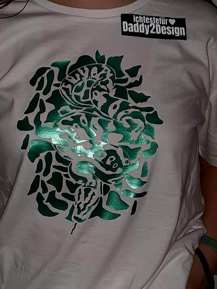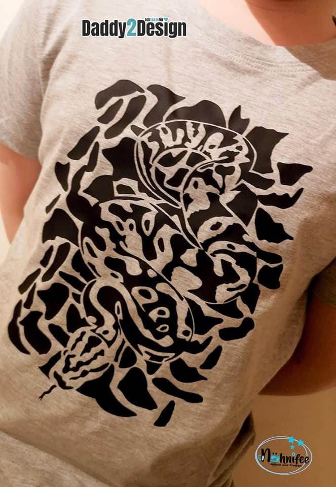 Hier erhaltet ihr die Schlange mit hinterlegtem Muster mit 2 Versionen für hellen und für dunklen Stoff - mit nur einer einzigen Folie entsteht dieser tolle Effekt, Ihr könnt aber beide Versionen zusammen für einen 2 Farben Effekt verwenden