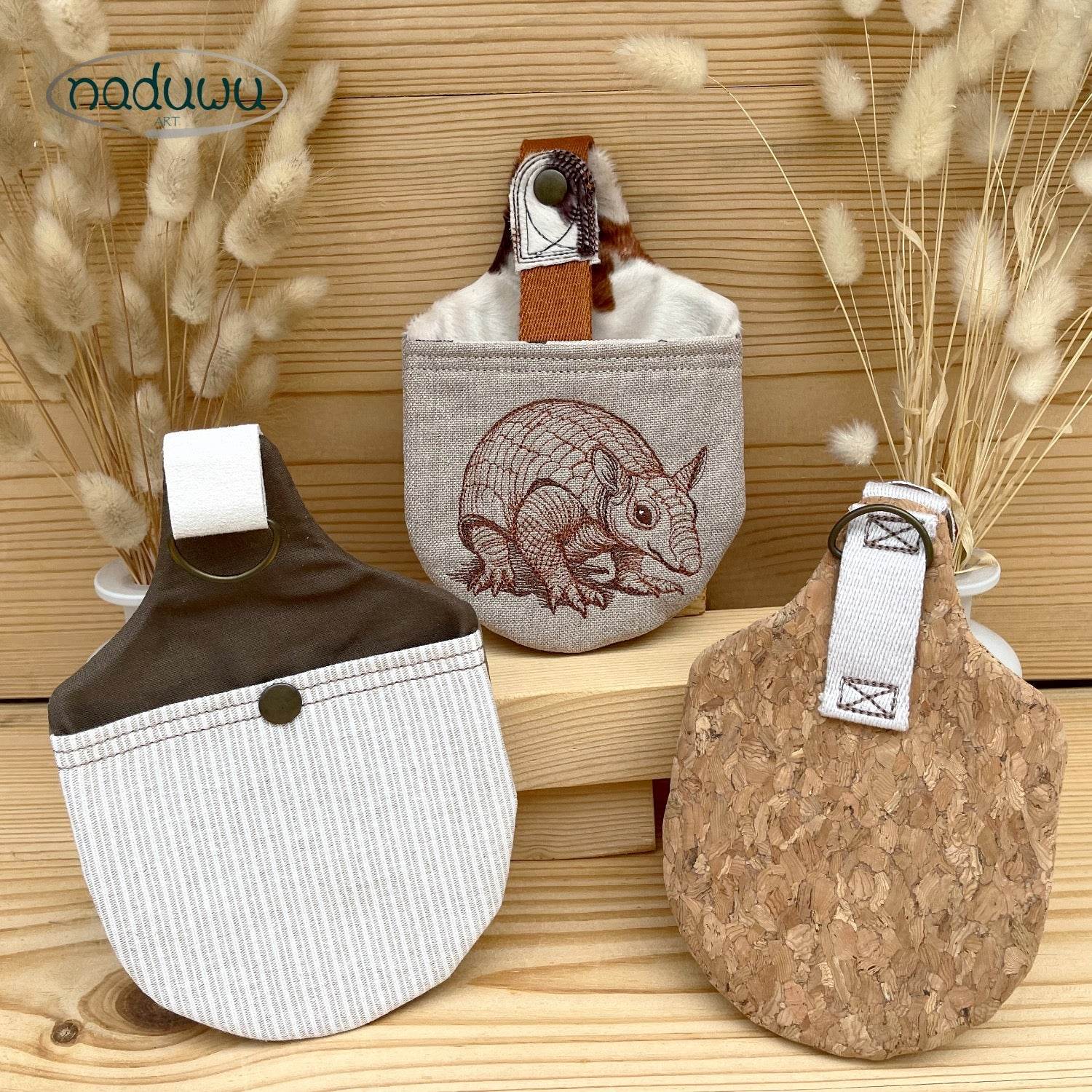 - Eine Variante mit dem armadillo-Motiv und der Rückseite mit Gürtelschlaufe