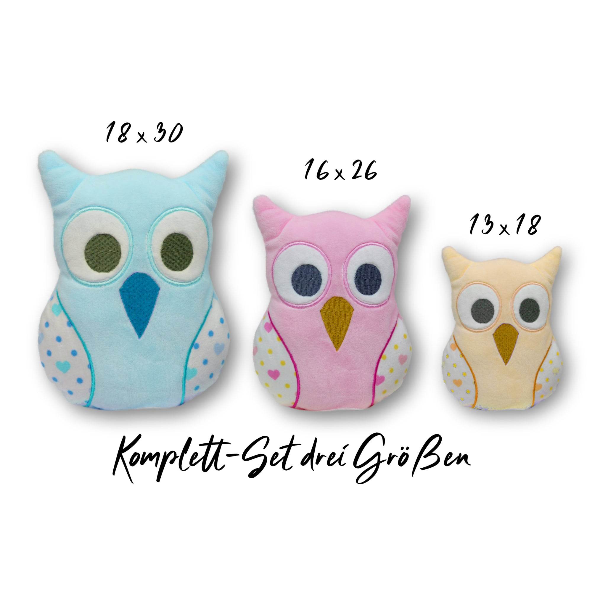 Stickdatei Eule in the Hoop in drei Größen als Komplett-Set