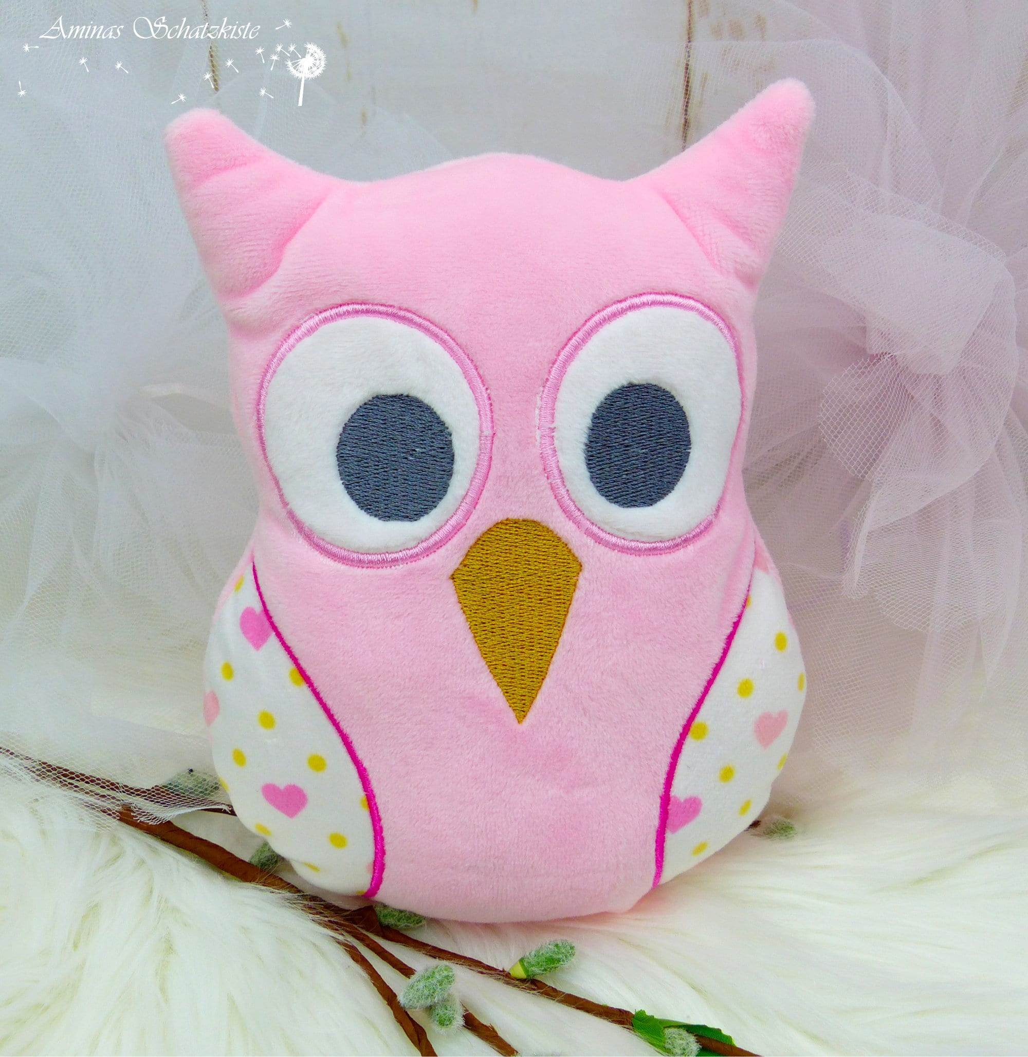 Achtung! Es handelt sich um eine Stickdatei – nicht um die fertig genähte Eule!