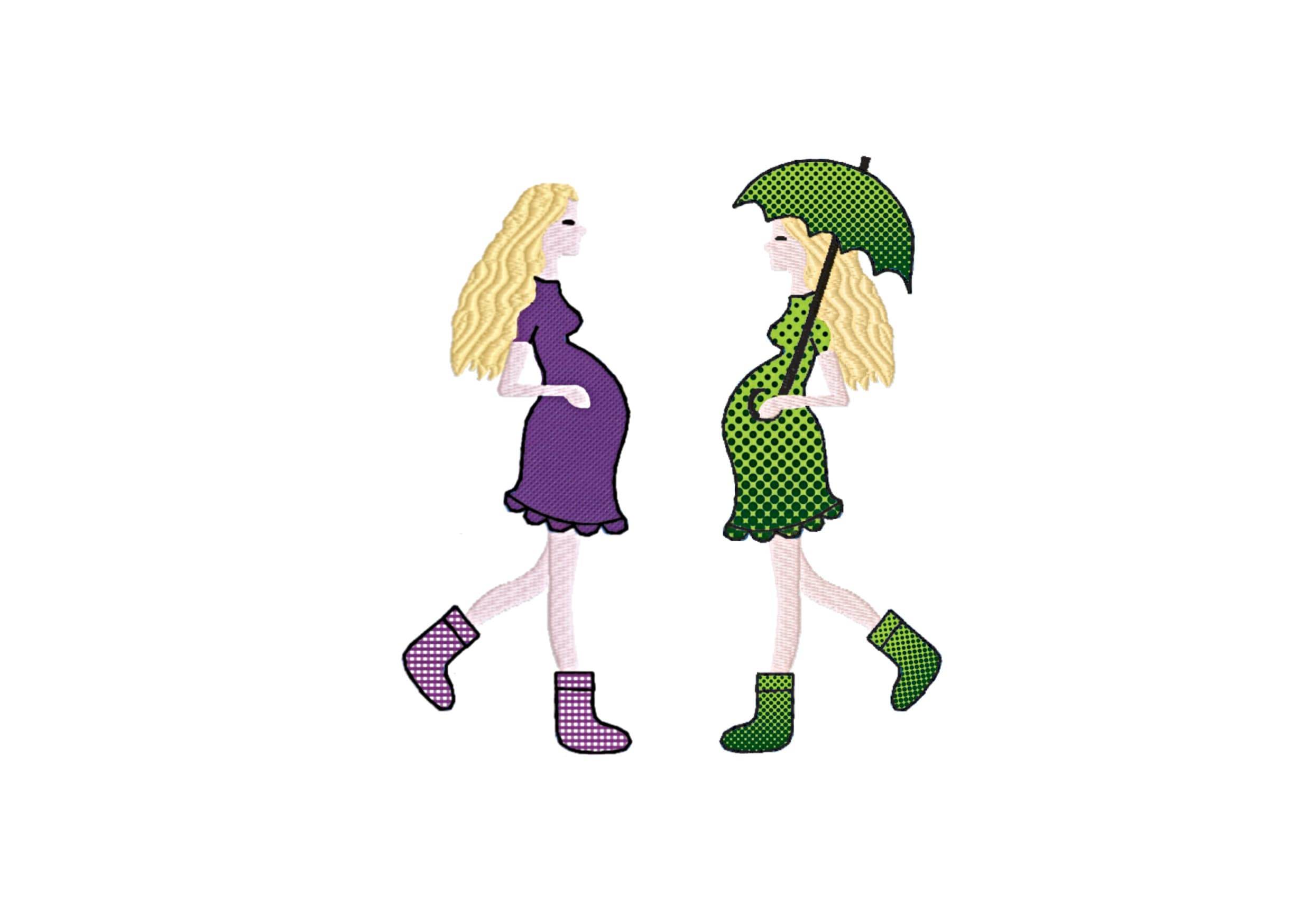 Maße Frau mit Schirm: 5,4 cm x 14,7 cm, 4.332 Stiche