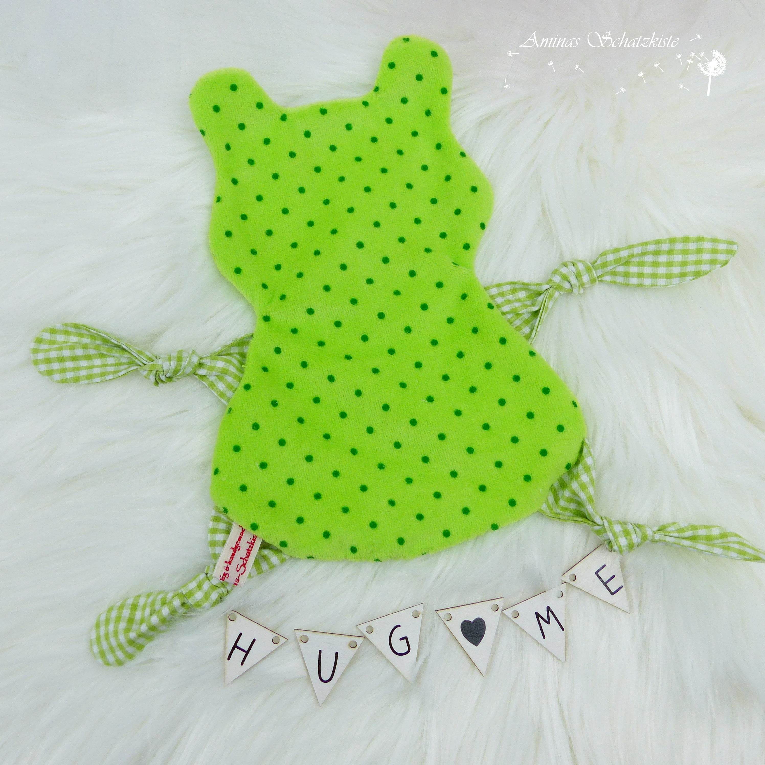 Hier kommt ein witziger Frosch als Kuscheltuch. Er ist ein treuer Begleiter und freut sich über Streicheleinheiten.