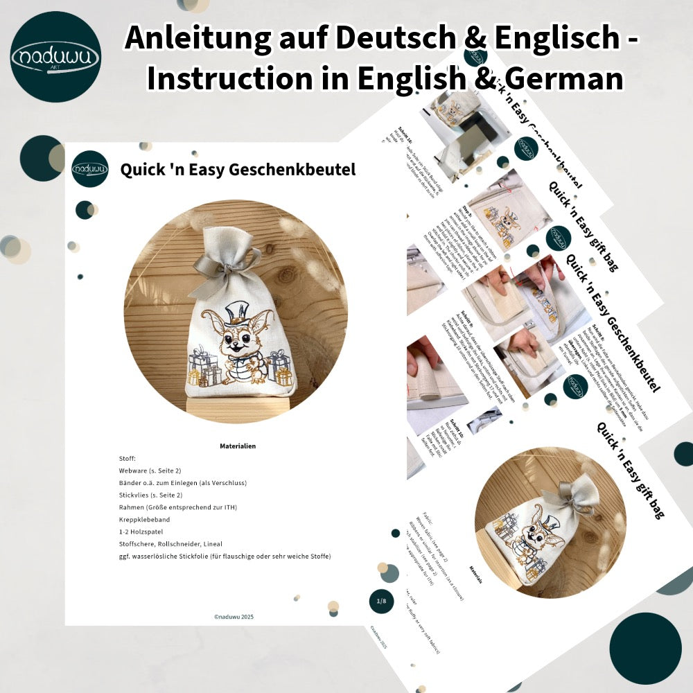 🎬Willst du dir ein Bild davon machen wie der “Quick ‘n Easy Geschenkbeutel” In The Hoop gestickt wird? Kein Problem! Hier geht's zur kostenlosen Video-Anleitung auf unserem Youtube-Kanal (Audio auf Deutsch): https://youtu.be/FbbvqVjp7a8