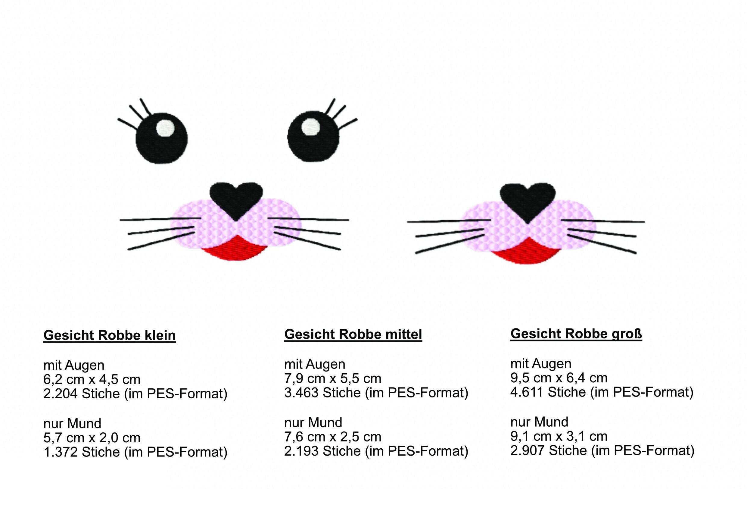 Stickdatei Gesicht Robbe in zwei Varianten und drei Größen