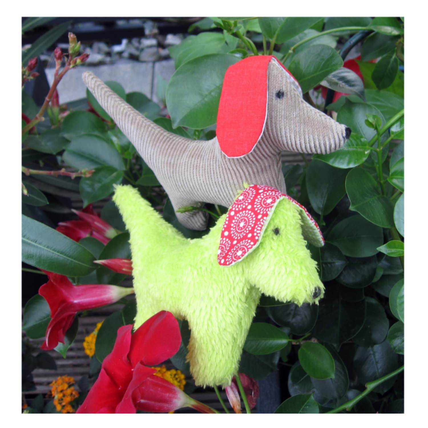Der Hund wird im Stickrahmen in the Hoop (in einem Stück) gestickt. Die Äuglein und die Schnauze werden mit der Hand aufgestickt oder aber mit einem Wäschestift aufgezeichnet. Achtung! Es handelt sich um eine Stickdatei – nicht um den fertig genähten Hund.