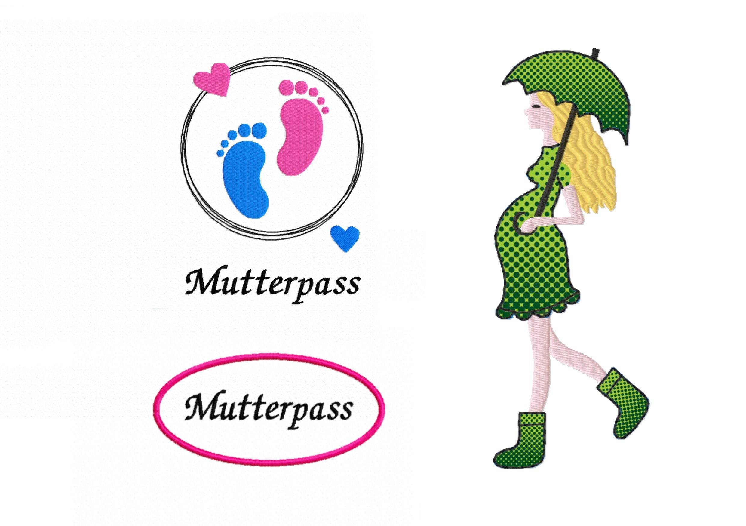 Stickdatei Mutterpasshülle SET 1, Rahmen 20 cm x 30 cm, ITH, 6 Dateien, Mama, Schwanger, Baby, Hülle, Umschlag