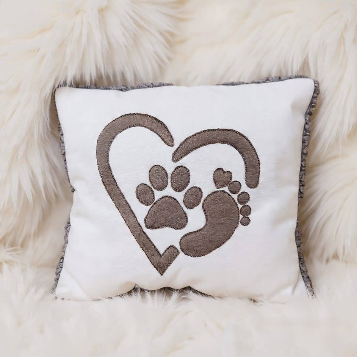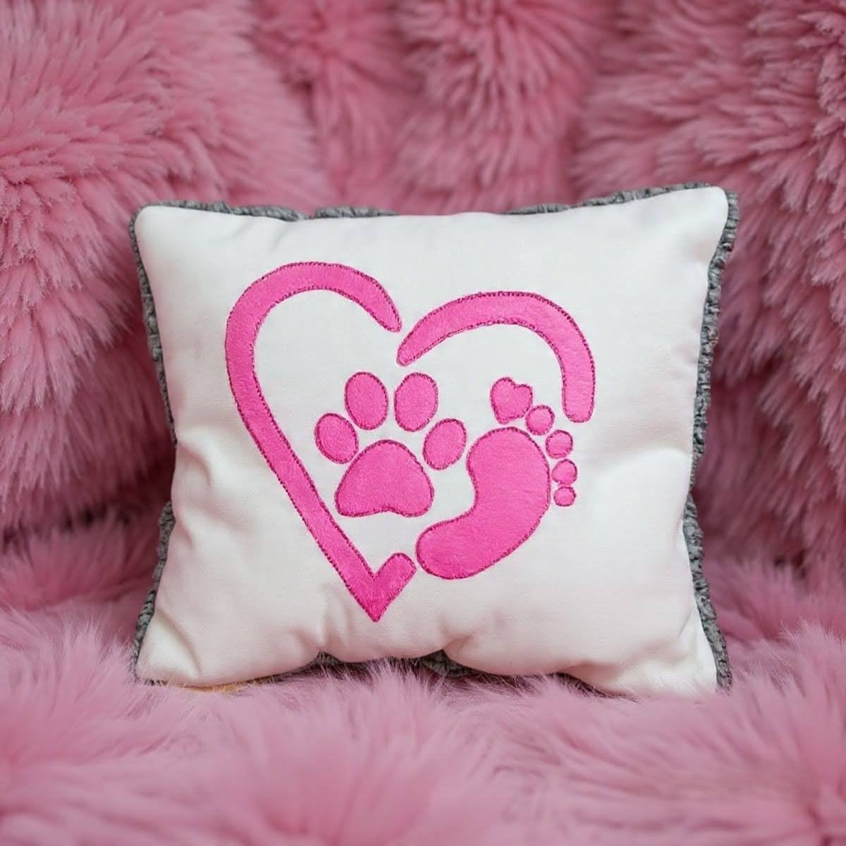Werde kreativ und bringe mit dieser Stickdatei Pfote & Füße mit Herz einen liebevollen Akzent auf deine Stoffprojekte!