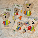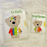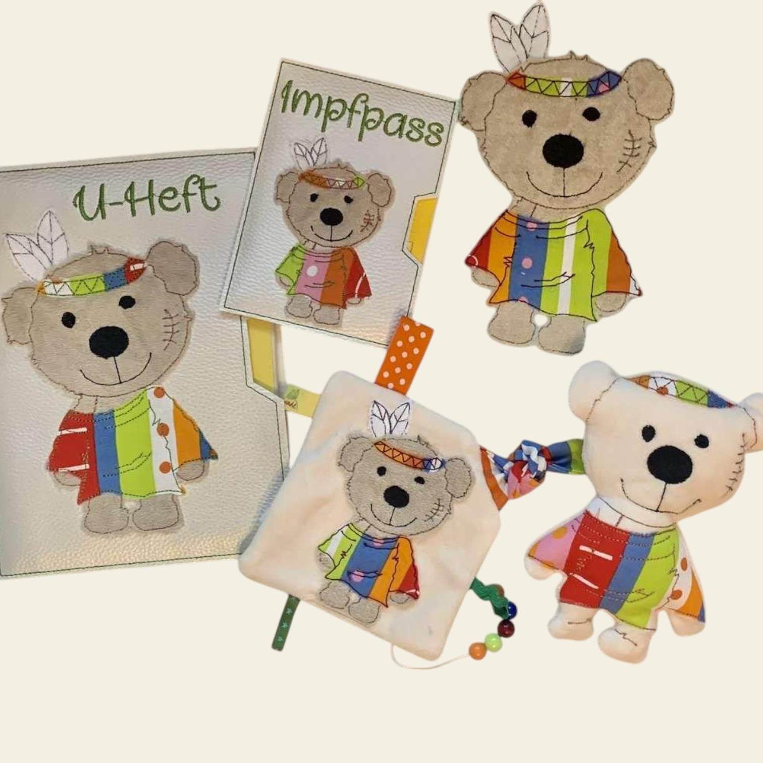 im Set ist ein Schnullertuch, eine Einzeldatei (Teddy), Impfpasshülle, U-Heft Hülle und ein Kuschelteddy