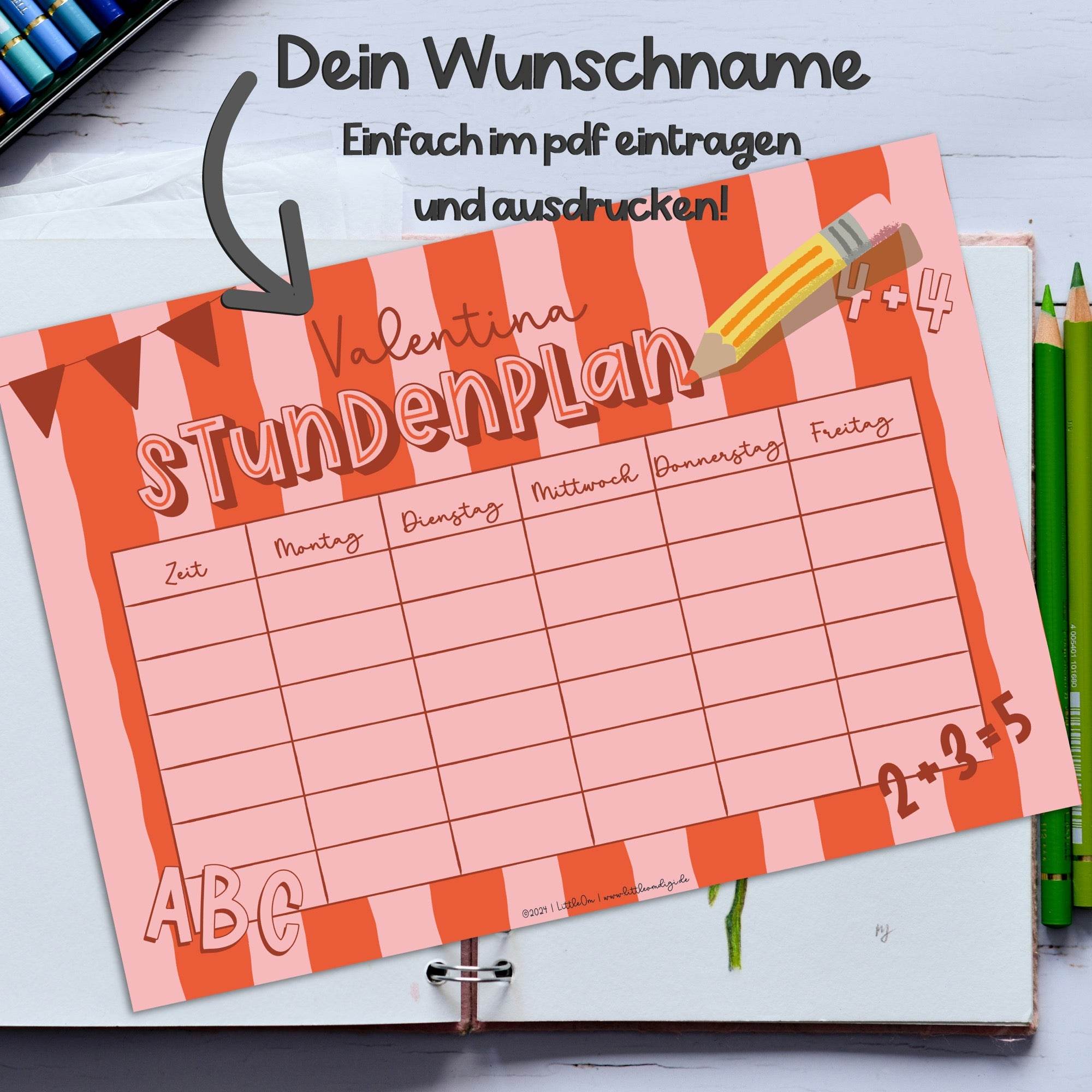 Stundenplan mit eigenem Namen - rosa / rot - Printable