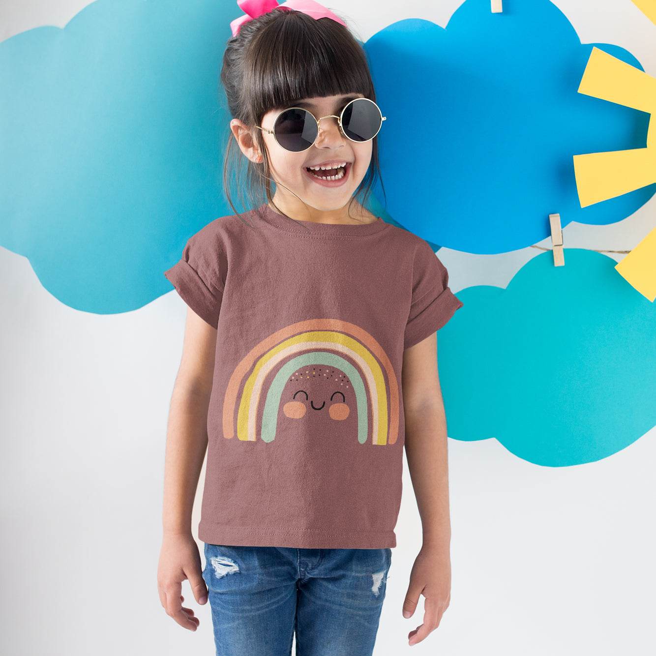 ✔ Motiv: Regenbogen mit Gesicht – besonders niedlich und perfekt für Kinder-Designs
