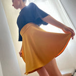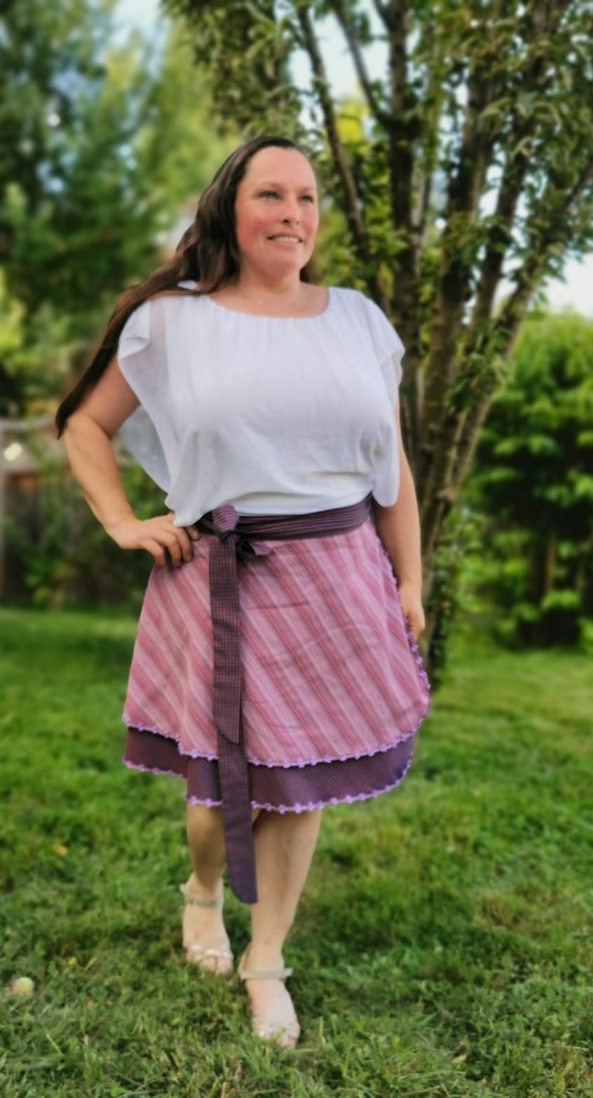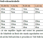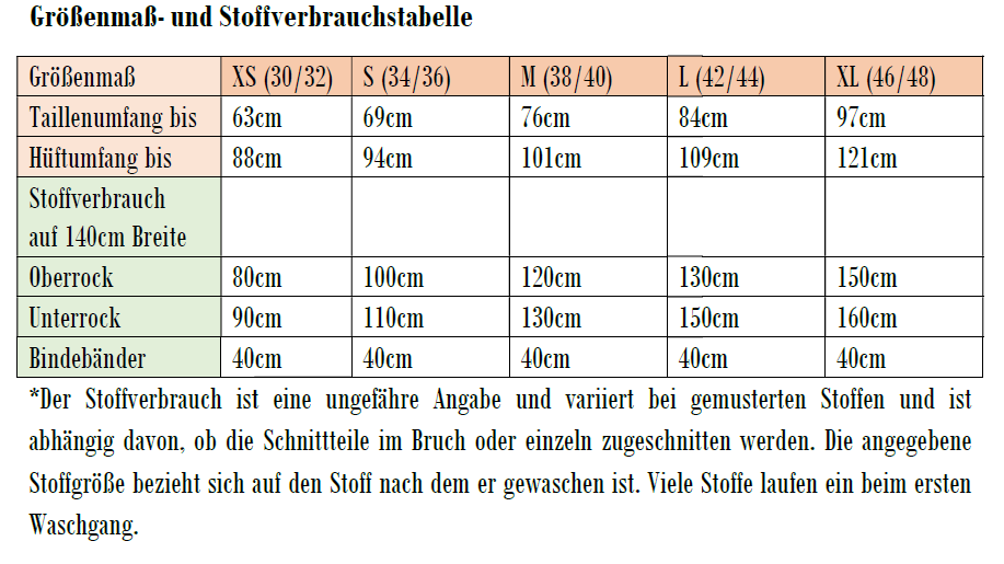 Das Schnittmuster ist auf Webwarestoffe ausgelegt. Aus Stoffen wie Baumwolle, Hanf oder Ähnliches wird der Rock zu einem legeren Begleiter im Alltag. Wird er aus besonders leichten Stoffen wie Seide/Seidengemisch oder z.B. Chiffon gefertigt, verkörpert er den puren Sommer in seiner luftigsten Form.