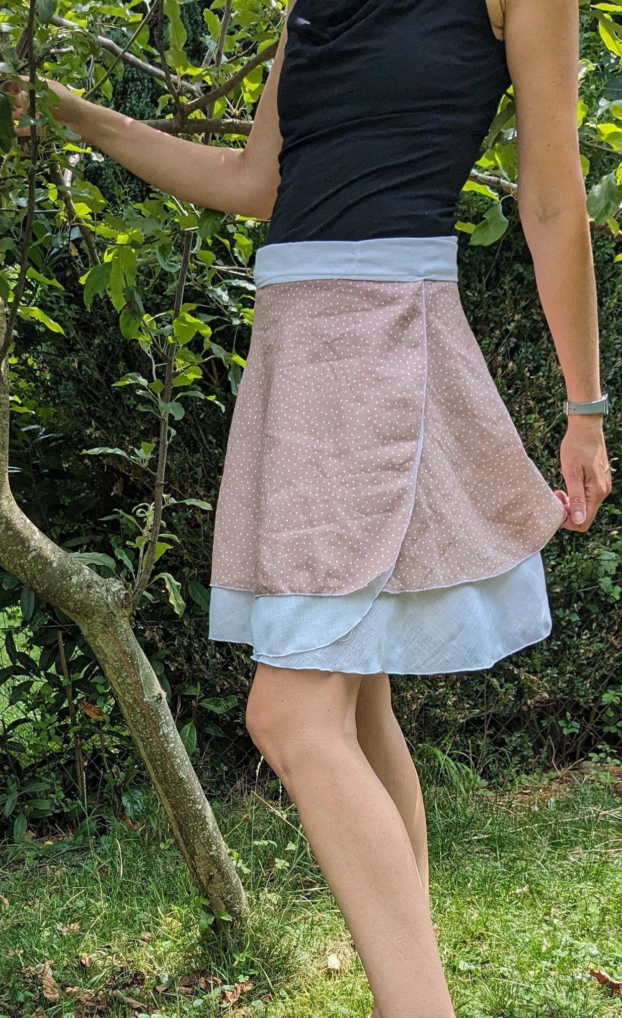 Der Wickelrock "Mirabell" ist ein echter Allrounder, der einfach zu nähen ist, und dabei sowohl modern chic als auch lässig luftig sein kann.